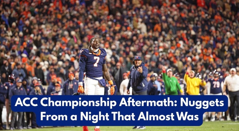 In our latest article, we break down the ACC Championship loss to Duke — from the overtime trick-play controversy to the backbreaking roughing-the-passer penalty that flipped the entire extra period. We dive into the offensive struggles, the defensive head-scratchers, and the never-ending debate over whether UVA should’ve gone for two to win it in regulation. But this isn’t just about what went wrong. It’s about what this season meant. Ten wins. A trip to Charlotte. A program proving it belongs on the national stage — even if it let a golden opportunity slip away. It wasn’t the ending we wanted — but it was a season we’ll remember.