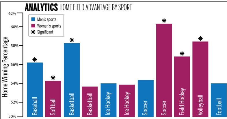 I believe the elimination of tickets purchases in our “minor” sports will encourage greater attendance for our home games. That would translate to more active cheering and more concession sales. I attend all men’s and women’s games and I know that our loud enthusiasm pumps up the players. (See the chart below.) Doubling the fan base in men’s and women’s soccer, volleyball, field hockey, and wrestling may be the difference between a win and a very close loss. Fans, coaches and, more importantly, the players, will go home happy after a “W”. I’m mystified that local schools (K through high school seniors) aren’t given the opportunity to attend games for free or at a very modest price. They may not pay at the gate but a boost in concessions and a full loud upper deck can’t be a bad thing. Crowds came in mass during some of the Welsh years because people love winners.